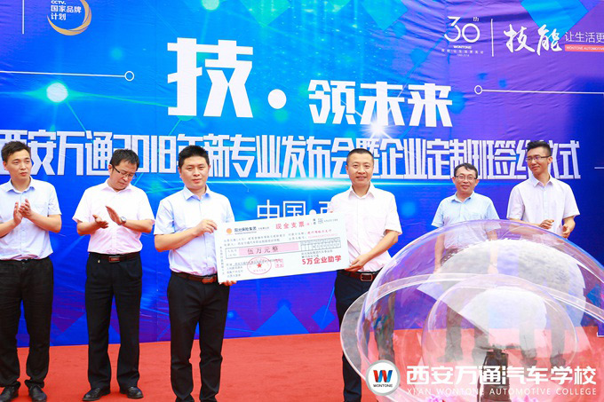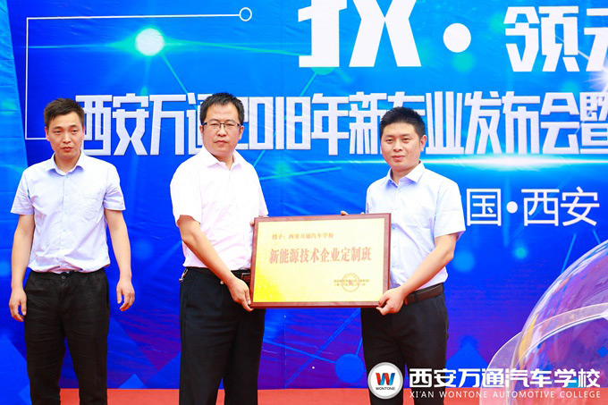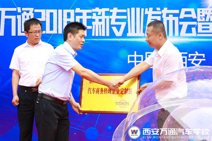 為了適應(yīng)國(guó)家新能源技術(shù)發(fā)展戰(zhàn)略的宏偉目標(biāo),以及汽車后服務(wù)市場(chǎng)發(fā)展中對(duì)綜合型汽車技能人才的高標(biāo)準(zhǔn)需求。2018年6月21日,西安萬(wàn)通汽車學(xué)校隆重舉行了西安萬(wàn)通2018年新專業(yè)發(fā)布會(huì)暨企業(yè)定制班揭牌儀式。