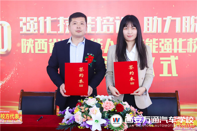 現場,校長助理爨助代表西安萬通汽車學校聘任靚車牛人、卡爾名車、百援精養三家企業總監為我校創就業幫扶指導專家,將市場人才需求與人才培養模式相結合,為學生創業、就業提供經驗指導和具體幫扶。