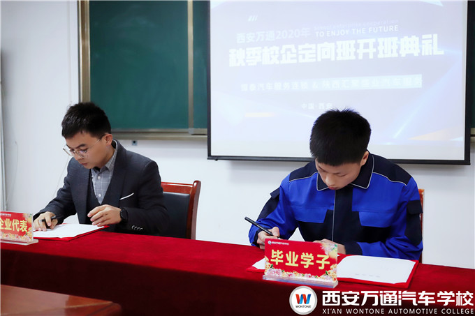 校企合作,共建未來。11月28日14時30分,西安萬通汽車學校順利舉行了2020年秋季校企定向班開班典禮。西安萬通校長助理爨助、創就業指導中心彭主管、學生處張主管、教務處梁主管以及恒泰汽車連鎖人事劉經理、陜西匯聚盛業汽車用品有限公司人事王經理共同出席了此次典禮。