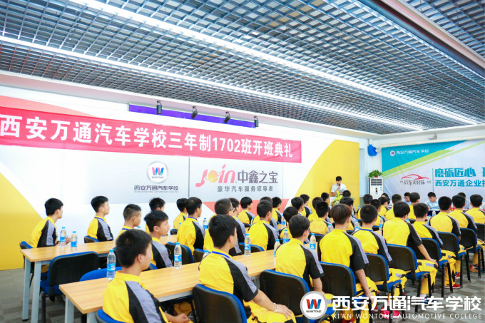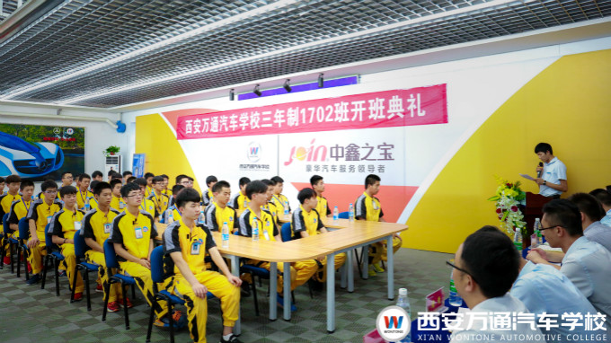 2017年8月3日19點整,西安萬通汽車學校汽車技術服務與運營工程師2+1大專1702班開班典禮正式開始。出席此次開班典禮的嘉賓主要有教務處李剛主任、創就業指導中心魏剛主任等校領導以及2+1大專1702班全體師生。