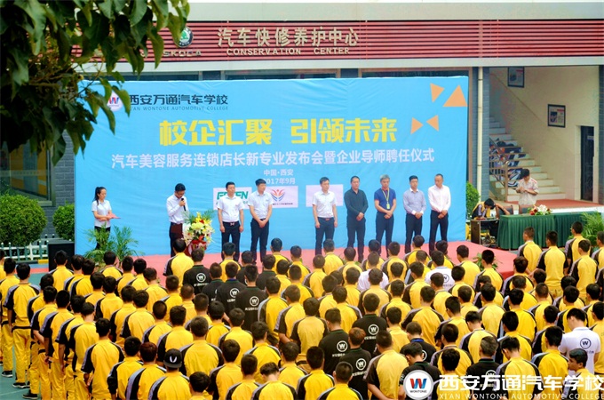 為了深層次落實(shí)“校企合作”發(fā)展戰(zhàn)略,保證西安萬(wàn)通學(xué)子的高就業(yè)質(zhì)量,2017年9月15日與多家全國(guó)型汽車(chē)美容服務(wù)連鎖企業(yè)攜手,構(gòu)建并發(fā)布“汽車(chē)美容服務(wù)連鎖店長(zhǎng)”專(zhuān)業(yè)。于此同時(shí),西安萬(wàn)通還聘任4名行業(yè)大咖,擔(dān)任汽車(chē)美容服務(wù)連鎖店長(zhǎng)專(zhuān)業(yè)的企業(yè)導(dǎo)師,共同為筑夢(mèng)者搭建優(yōu)質(zhì)的發(fā)展晉升平臺(tái),為汽車(chē)美容品牌連鎖機(jī)構(gòu)鑄造行業(yè)精英,塑造金牌店長(zhǎng)。