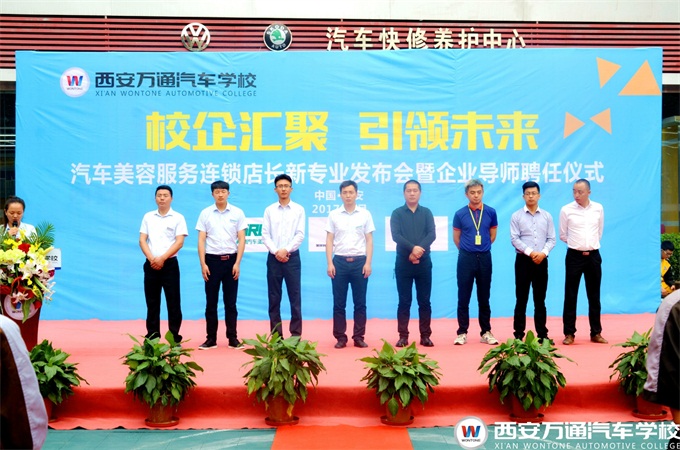 西安萬(wàn)通汽車(chē)學(xué)校教務(wù)處李剛主任、創(chuàng)就業(yè)指導(dǎo)中心魏剛主任等校領(lǐng)導(dǎo)以及每天美車(chē)汽車(chē)服務(wù)連鎖余震總經(jīng)理、李小龍運(yùn)營(yíng)總監(jiān)、美途客-靚車(chē)牛人汽車(chē)服務(wù)連鎖龍科宇總總經(jīng)理、格林汽車(chē)服務(wù)連鎖賈鑫總經(jīng)理等企業(yè)領(lǐng)導(dǎo)出席發(fā)布會(huì)。