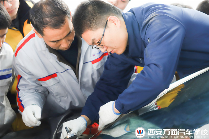 為幫助學子更快了解市場發展動態、掌握新技術,12月10日,西安萬通汽車學校特邀福耀玻璃技術總監兼西安萬通校企定向班的技術培訓導師華偉進校園,為我校校企定向班的學子帶汽車玻璃修復及更換技術實戰經驗分享的公開體驗課。
