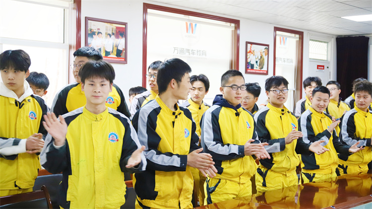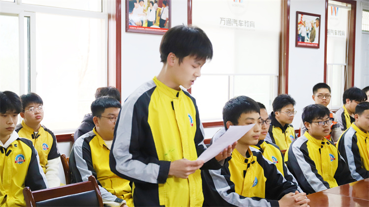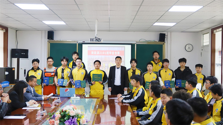 緊接著,新能源2101班的學子們以高昂的士氣展示了班級風采。他們齊聲喊出班級口號,聲音鏗鏘有力,回蕩在會議室內,彰顯著青春的熱情與活力。這一環節不僅展現了學子們的團結與凝聚力,更傳遞了他們對于未來的無限憧憬與信心。 隨后播放的班級視頻,記錄了學子們在校期間的點點滴滴。從軍訓時的青澀稚嫩,到課堂上的認真聽講,再到實訓場上的揮汗如雨,每一幀畫面都飽含著珍貴的回憶。這些畫面讓學子們回憶起共同度過的美好時光,也讓他們更加珍惜彼此之間的友誼。