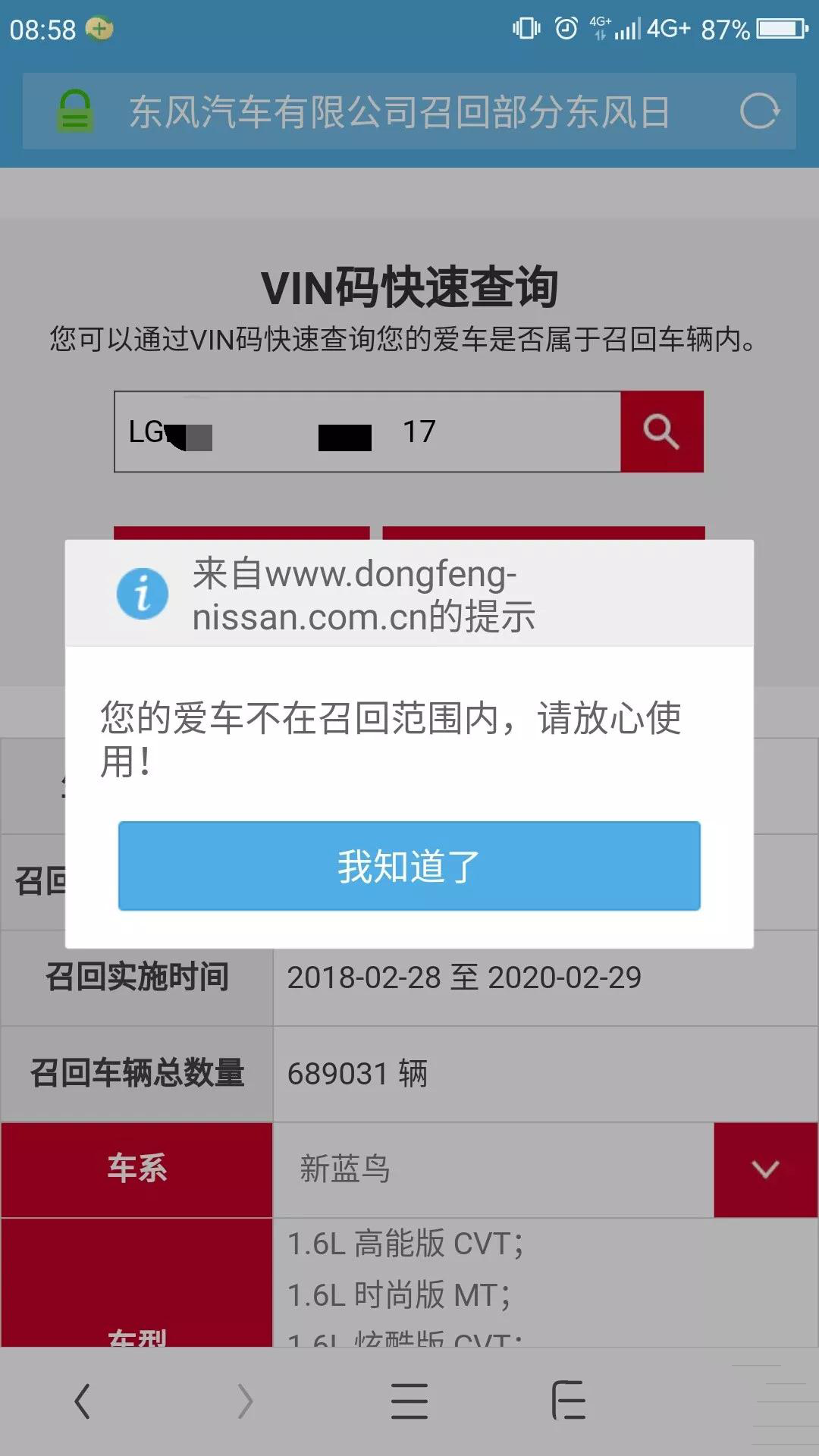 WTF!我的軒逸居然需要召回,我趕緊登陸了東風日產官網,查到了這樣的信息:日前,東風汽車有限公司按照《缺陷汽車產品召回管理條例》和《缺陷汽車產品召回管理條例實施辦法》的要求,向國家質檢總局備案了召回計劃,自2018年2月28日起,召回2015年4月6日至2017年7月21日生產的部分新藍鳥、新騏達、新生代騏達及軒逸/全新軒逸汽車,共計689031輛。