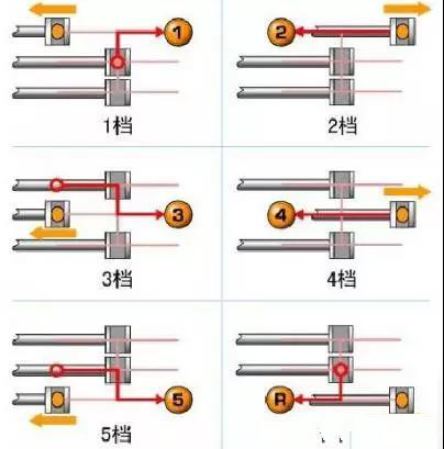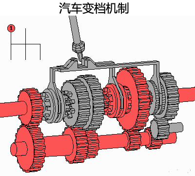 擋桿下面的部分,我們是看不到的。我們可以通過動畫來了解,其中紅色為擋位傳遞路線(仔細看,為了方便你看清楚,下面的動圖顯示較慢):