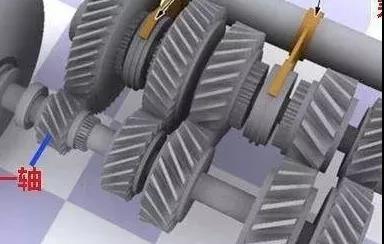 通常為了加大接觸面是,擋位齒輪使用成對的斜齒輪。