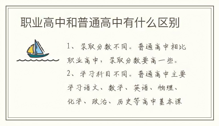 職業高中和普通高中都是我國教育事業的一部分。兩者主要區別有: