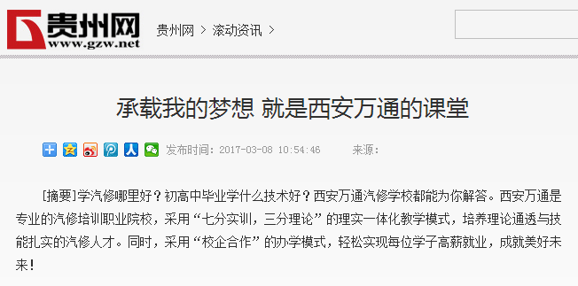 【貴州網(wǎng)】西安萬通汽車學(xué)校學(xué)汽修技術(shù)創(chuàng)業(yè)怎么樣