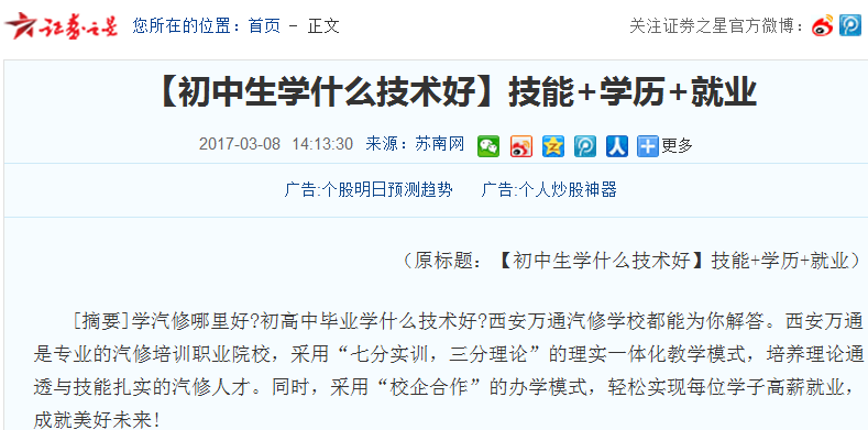 【證券之星】2017年陜西單招學(xué)校怎么選?