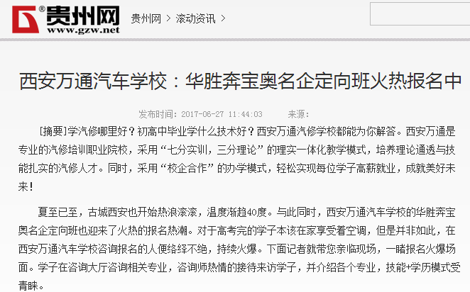 【貴州網】西安萬通汽車學校學汽修技術創業怎么樣