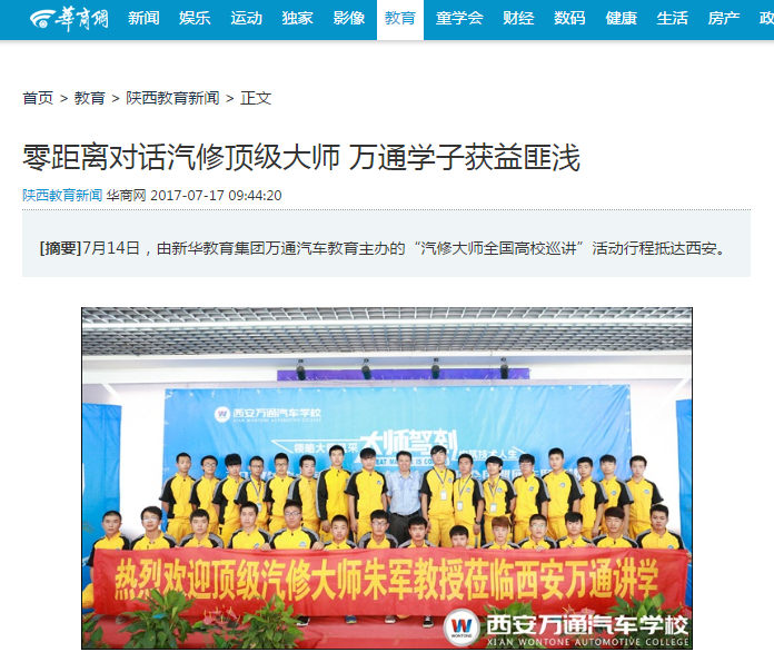 記者還了解到,萬通汽車教育每年都會有行業內的知名專家通過“汽修大師全國巡講”來到西安萬通汽車學校開展講座。先后有李東江、闞有波、王凱明等多名大師走進西安萬通。今年,學校迎來了行業頂級大師朱軍教授,給師生們帶來了不一樣的汽修體驗。