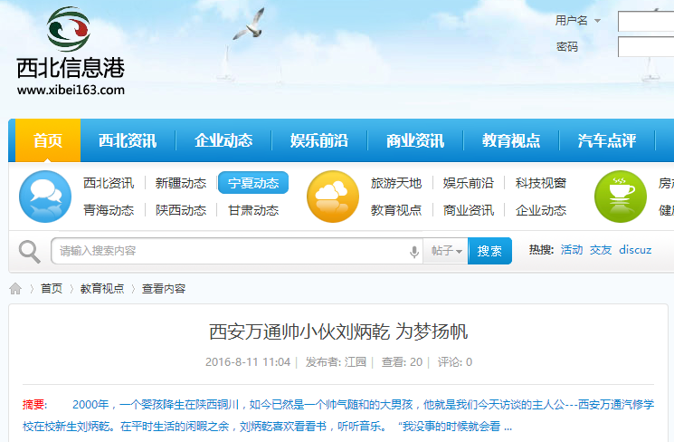 【西北信息港】帥氣小伙劉炳乾 為夢揚帆