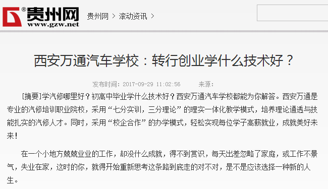【華商網】西安萬通汽車學校 什么行業容易創業成功 投入小、回報