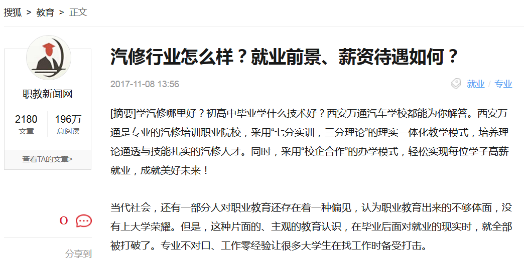 【華商網】現在來西安萬通學什么專業好?為什么說汽修專業是未來