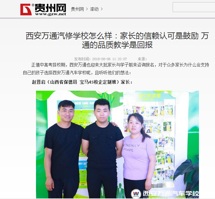 “這次是我第二次來萬通,為了給娃找個好學校,之前也去過別的學校看了,但一對比,還是覺得西安萬通要更好一些,最起碼學校的那些學技術的車挺多的,還有些機器我都沒見過,而且學校管理也挺好的,把娃放在這里我們也放心。娃以前的學習成績也不咋好,學個技術將來也好多一條路,不用像我到處跑著打工。”