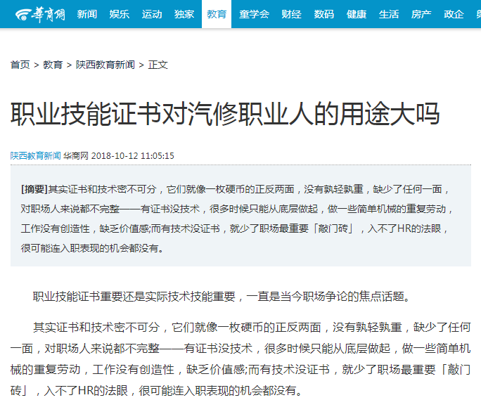 【華商網(wǎng)】職業(yè)技能證書(shū)對(duì)汽修職業(yè)人的用途大嗎