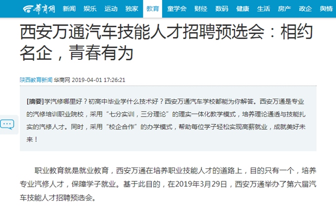 職業教育就是就業教育,西安萬通在培養職業技能人才的道路上,目的只有一個,培養專業汽修人才,保障學子就業;诖四康,在2019年3月29日,西安萬通舉辦了第六屆汽車技能人才招聘預選會。