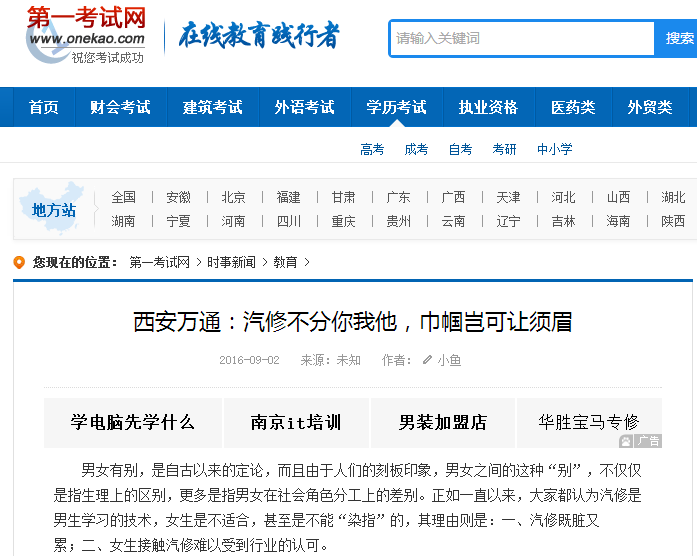 【第一考試網】汽修不分你我他,巾幗豈可讓須眉