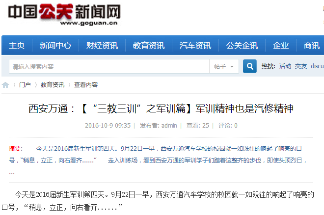 【東北新聞網】西安萬通開啟2016屆新生軍訓模式