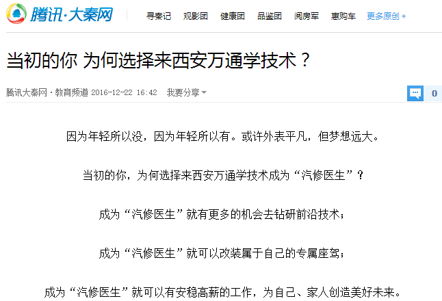 【華商網】為何要來西安萬通學汽修,傳統汽修與現代汽修區別在哪
