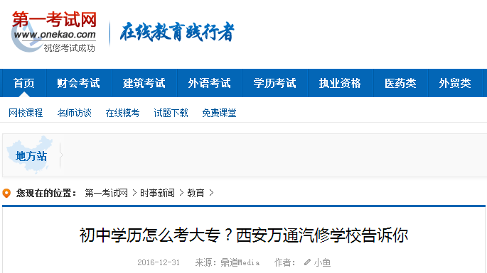 【中國第一考試網(wǎng)】初中學(xué)歷怎么考大專?西安萬通汽修學(xué)校告訴你