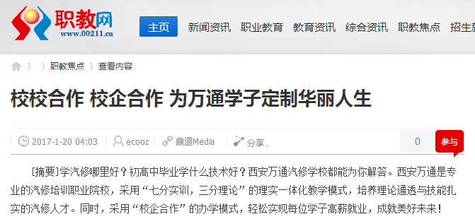 【職教新聞網】西安萬通2018年第四季度名企定制班正式啟動
