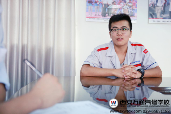 通過對比,王玉璽最終選擇了西安萬通汽修學校,其原因便是,經過自己實地考察,發現這里環境好、伙食好,管理合理嚴格,教學嚴謹負責。而且,在學校的這一個月,恰逢闞有波教授來西安萬通汽修學校講座,王玉璽深受其影響,表示自己在學校要努力學好技能,積極參加活動,將來會向汽車診斷師這方面發展。