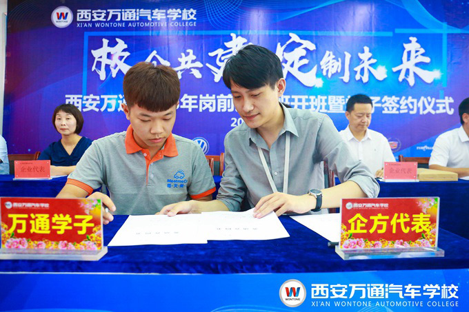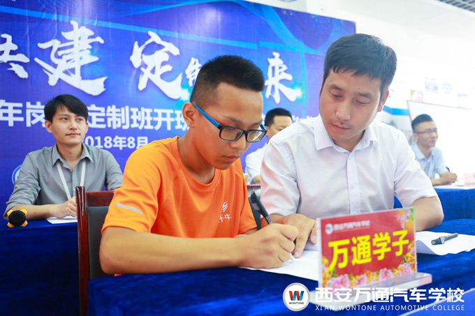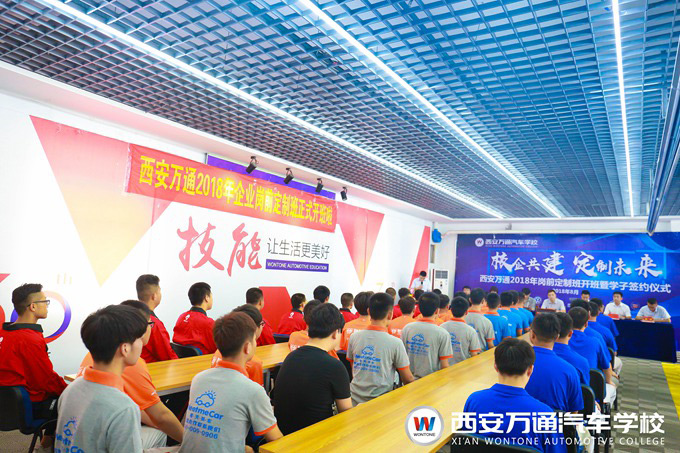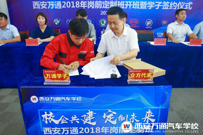 8月16日,西安萬通完成了與上述企業籌備“企業崗前定制班”的相關事宜,并于當天成功舉辦2018年秋企業崗前定制班開班暨企業學子簽約儀式。