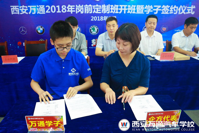 2018秋季開學之際,西安萬通汽車學校與恒泰汽車服務連鎖、福耀汽車玻璃服務、靚車牛人汽車美容服務連鎖以及每天美車汽車美容服務等企業共同發力,將學子的未來職業發展從技能培養到崗前強訓又推向了更高層次。