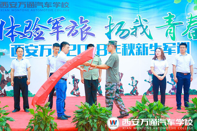最后,軍訓(xùn)團(tuán)團(tuán)長宣布了編制任命,學(xué)生處張主管為軍訓(xùn)營授旗完畢,西安萬通汽車學(xué)校2018級秋季新生軍訓(xùn)正式開始。
