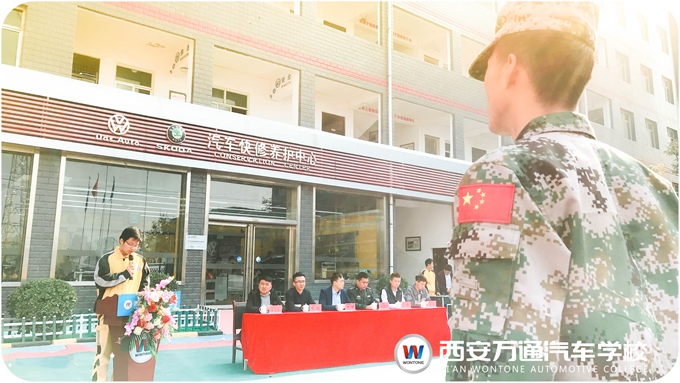 溫暖的陽(yáng)光驅(qū)散著初冬的絲絲寒意,西安萬(wàn)通汽車學(xué)校在2018年11月9日舉行秋冬季軍訓(xùn)匯演。西安萬(wàn)通校區(qū)李主任、創(chuàng)就業(yè)指導(dǎo)中心魏主任、督察處王主任、陜西陸軍預(yù)備役高炮師劉浩生團(tuán)長(zhǎng)等領(lǐng)導(dǎo)嘉賓出席了此次軍訓(xùn)匯演。
