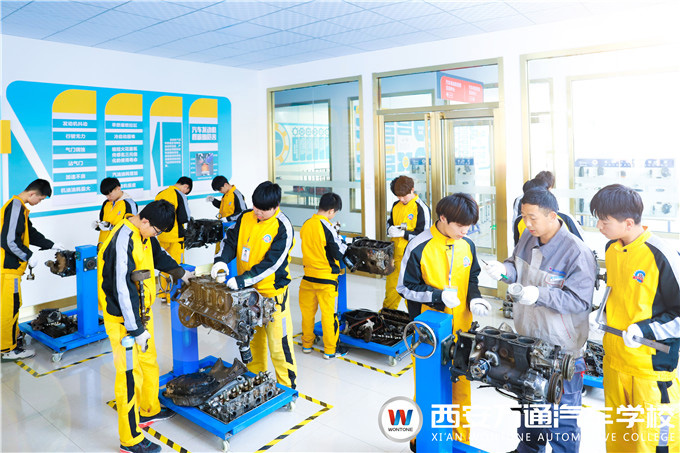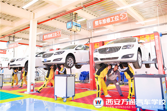 西安萬通汽車學校教學設施設備齊全,建有新能源汽車實訓中心、高端車實訓檢測中心、智能網聯實訓中心、汽車美容改裝實訓中心、整車實訓大廳、電子電焊實訓室、四輪定位實 訓廳、多媒體網絡中心等教學實訓集群20余個,設施設備齊全。同時為滿足學生實踐動手操作的需要,引進中、美、德、日、韓等五大車系包含各大品牌的汽車,能夠與當前汽修技術革新緊密結合。