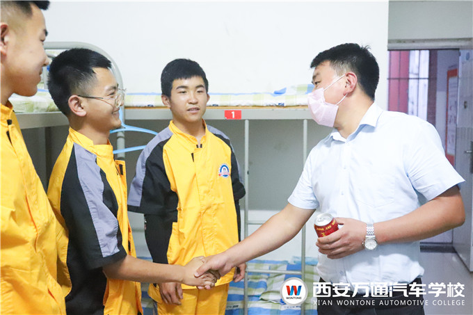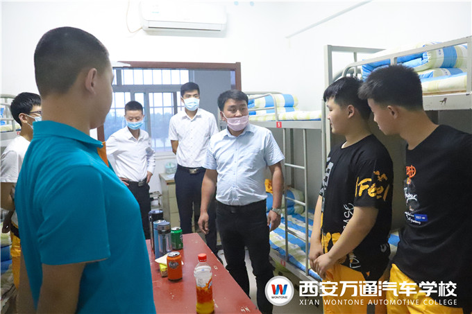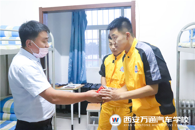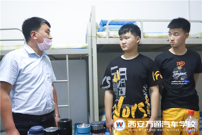 為幫助2020級新生更好地適應在萬通的學習生活,做好復工復學關鍵時期的個人健康防護,5月20日晚7時,西安萬通汽車學校的學生處張主管攜各位新生班主任深入走訪新生宿舍,了解新生入校、入住情況,為新生解疑答惑并送出小禮品。