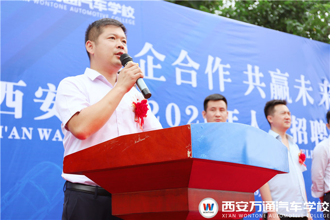 大會最后一項,西安萬通爨助為此次雙選會做總結性講話,他表示此次雙選會的順利舉行,更多的是讓每一位畢業學子都能找到心儀的工作,讓每家企業都能招聘到合適的人才。并強調,今后西安萬通會持續為汽車技能人才的培養做出不懈努力,也希望與眾多的企業深化合作關系,不斷為汽車技能人才成功過走上高薪工作崗位鋪路搭橋,提供保障。