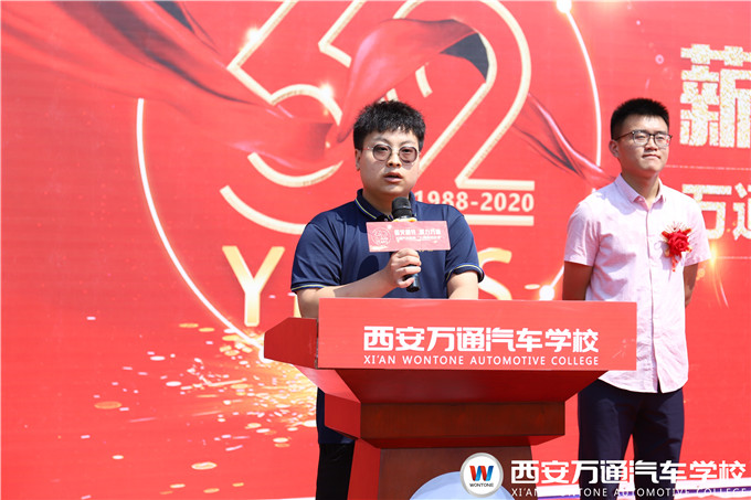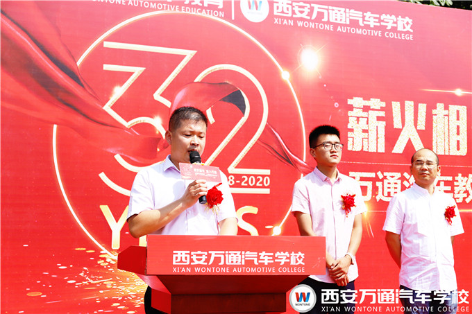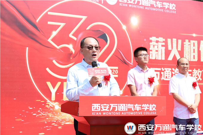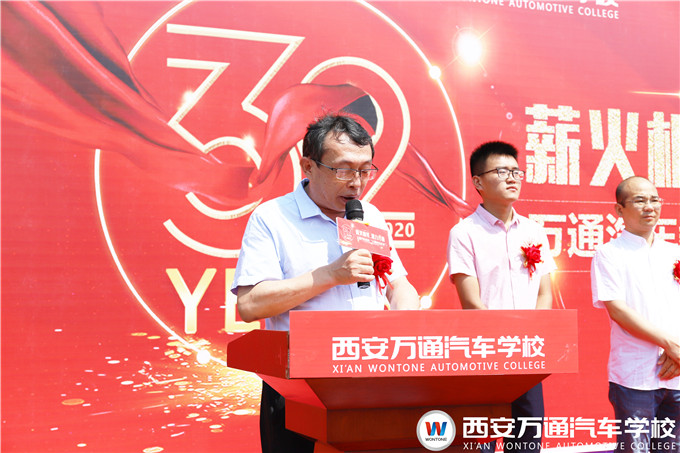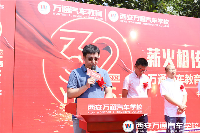萬通汽車教育32周年校慶月啟動儀式在一陣莊嚴的國歌聲中拉開了序幕,西安萬通汽車學校校長助理爨助致歡迎詞。他對各位嘉賓的到來表示熱烈的歡迎,同時講到,此次32周年校慶月的隆重舉行,既是對西安萬通過去成績的肯定,更是實現更大發展的嶄新起點。全體萬通人會始終堅持“明德精技、知行合一”的校訓精神,不斷深化辦學理念,創新教學模式,肩負起時代賦予的使命,努力將學校打造成為國內頂尖、在國際上有影響的汽車職業教育機構,為國家培養出更多更優秀的高技能汽修人才。