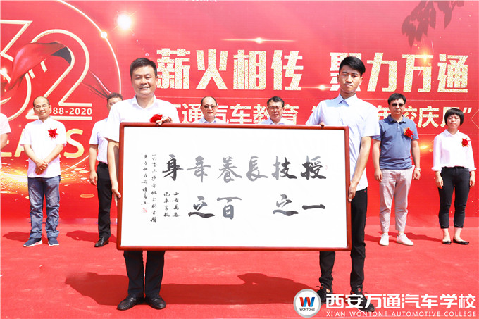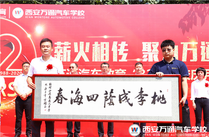 萬通汽車教育辦學32年為社會培養了70多萬名汽車行業的高端優秀人才,值此佳際,兩位優秀畢業生代表余樹青、張棟琪也遠道而來為恭賀母校盛誕,獻上牌匾。優秀就業學子張棟琪表示在西安萬通學習的時間是他人生當中最重要的時期,是母校的培養,老師的諄諄教誨,才使他有了今天的成就。感恩母校,也祝母校越辦越好!