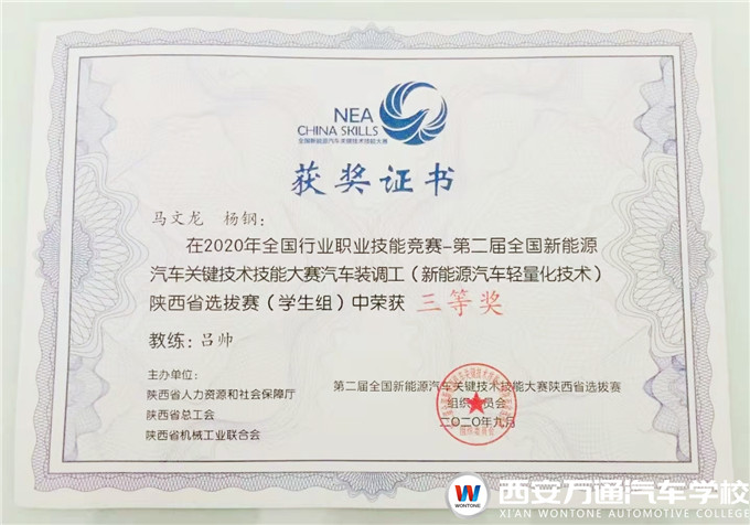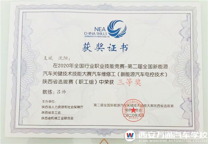 10月22日,由人力資源社會(huì)保障部、中國(guó)機(jī)械工業(yè)聯(lián)合會(huì)共同主辦的2020年全國(guó)行業(yè)職業(yè)技能競(jìng)賽——第二屆全國(guó)新能源汽車關(guān)鍵技術(shù)技能大賽決賽在河南省新鄉(xiāng)市落下帷幕。經(jīng)過層層選拔,西安萬通汽車學(xué)校的4名選手均獲得了陜西省選拔賽三等獎(jiǎng)的佳績(jī),彰顯了我校在新能源汽車技術(shù)人才培養(yǎng)領(lǐng)域的重要地位,展示了我省高技能人才的風(fēng)采。