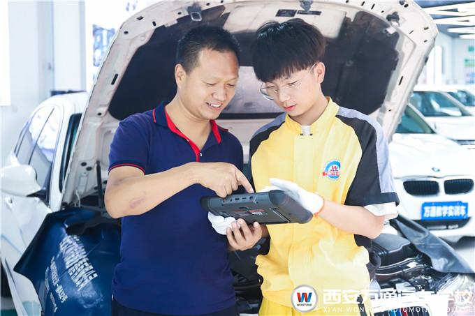 西安萬通汽車學校緊跟時代腳步,打破傳統,采用項目工單式“理實一體化”教學,讓學子多動手、多實踐,掌握真技術。同時打造高端車診斷實訓中心、新能源檢測實訓中心、汽車美容改裝實訓中心以及整車實訓大廳等數十個專業化實訓環境,保障學生們每天都在真車上進行手動操作。