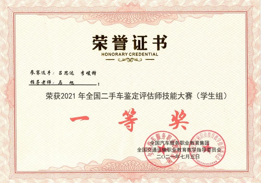 在剛剛結束的2021年全國二手車評估師技能大賽上,中國東方教育旗下萬通學子呂思達、李峻峰榮獲學生組一等獎,指導教師馬旭榮獲優(yōu)秀指導老師稱號。