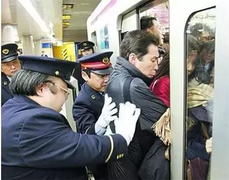 日本職業“地鐵推手” 在日本,有種職業叫做“地鐵推手”。上下班高峰期,在人滿為患的車門口,助乘客們一臂之力,讓他們順利進入車廂,保證地鐵安全通行。