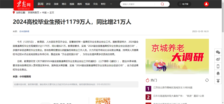 2024高校畢業生規模龐大 教育部公布的數據顯示,2024屆高校畢業生規模預計1179萬人 同比增加21萬人,高校畢業生的就業壓力或將變得更大,就業形勢復雜嚴峻。