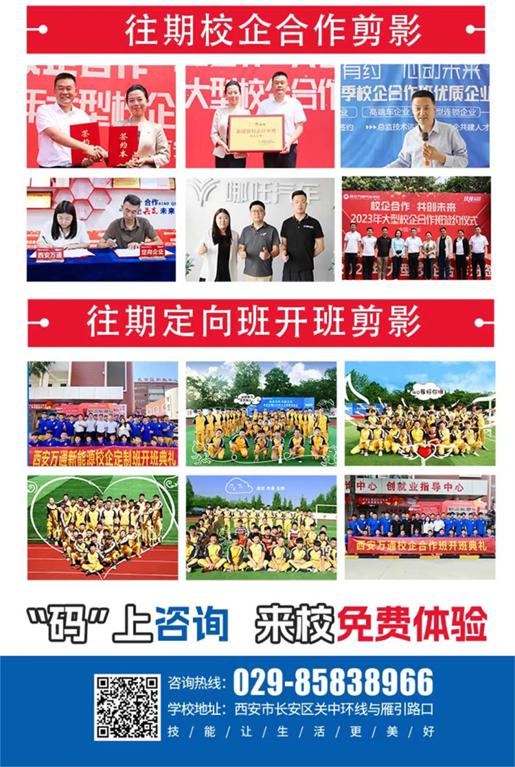 西安萬通不斷推進高品質企業的開發,與眾多車企建立校企合作,共同培養符合時代發展的汽車技能人才,學子畢業可進入新能源車企從事技術、管理崗位 。
