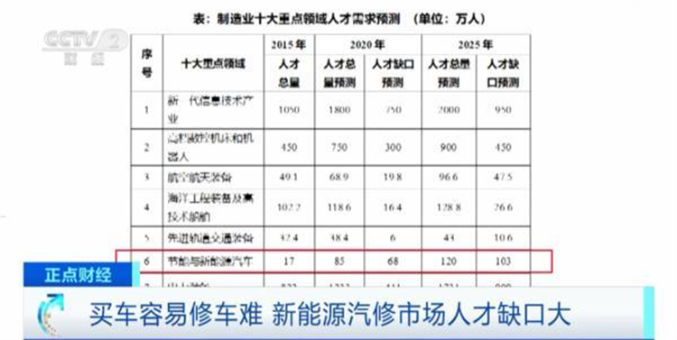 行業前景 工信部發布的《制造業人才發展規劃指南》指出,到2025年,節能與新能源汽車的人才總量預計達到120萬人,但人才缺口預計可達103萬人。其中,新能源汽車維修領域將面臨80%的人才空白。