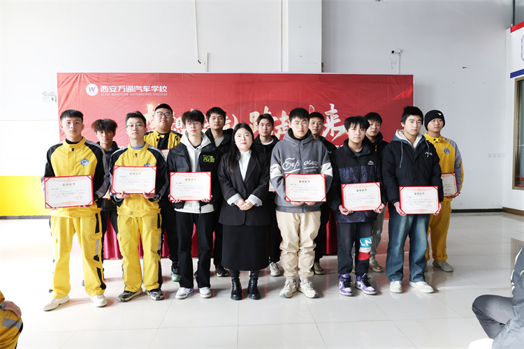 隨后,教務處李主管上臺,宣讀了第四階段優秀表彰名單。這份名單涵蓋了學習標兵、技能能手、創新先鋒等多個獎項,共計十二項,充分展現了西安萬通汽車學校在全面育人方面的豐碩成果。 緊接著,獲獎的優秀學生代表依次上臺領獎,他們的臉上洋溢著自豪與喜悅。