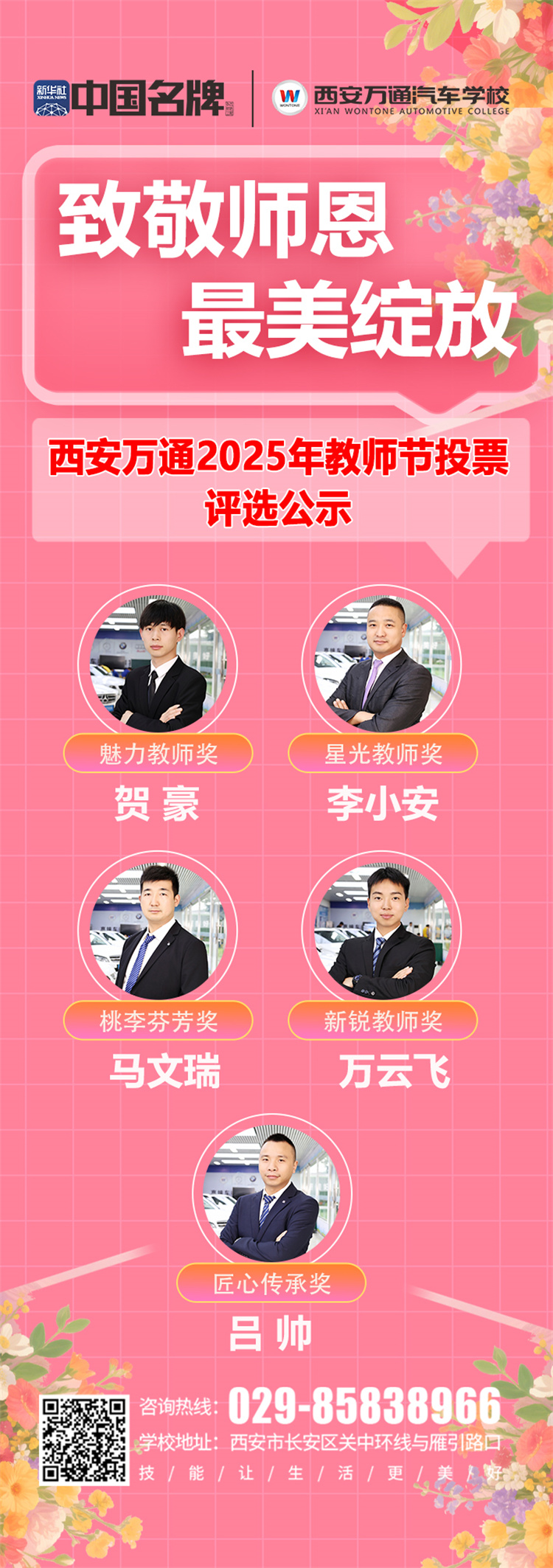 一句祝福,感恩一路相伴 “一支粉筆寫春秋,三尺講臺系國運。”教師的職業從來不是簡單的“教書”,而是用自己的光,照亮學生前行的路。 今天,讓我們鄭重道一聲:西安萬通全體老師,教師節快樂!感謝你們以匠心育匠人,以初心筑夢想,感謝你們在實訓臺旁的每一次示范,在作業本上的每一筆批注,在成長路上的每一次鼓勵。 讓我們向所有默默耕耘的教育工作者致敬! 愿歲月溫柔以待, 愿老師們桃李芬芳!