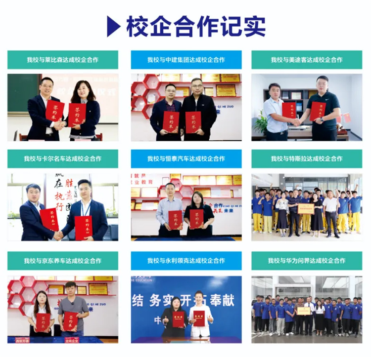 四、校企深度融合,名企就業(yè)有保障 與比亞迪、奔馳、特斯拉等眾多企業(yè)合作共建,定向培養(yǎng)、畢業(yè)推薦就業(yè),進入大廠不再只是夢想!